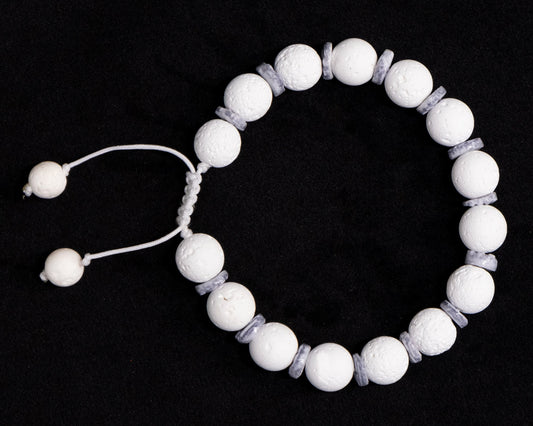 10mm White Lava Genuine, Grey Shell Spacer Beaded Bracelet | Adjustable | Unique | Natura | Healing Stone | Bohemian
