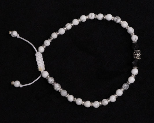 4mm White Howlite Genuine, Silver Spacer Beaded Bracelet | Adjustable | Unique | Natural | Meditation Crystal | Healing Stone | Bohemian