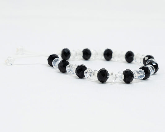 6mm Black Rondelle Crystal and Clear Crystal Genuine Beaded Bracelet | Adjustable | Unique | Bohemian