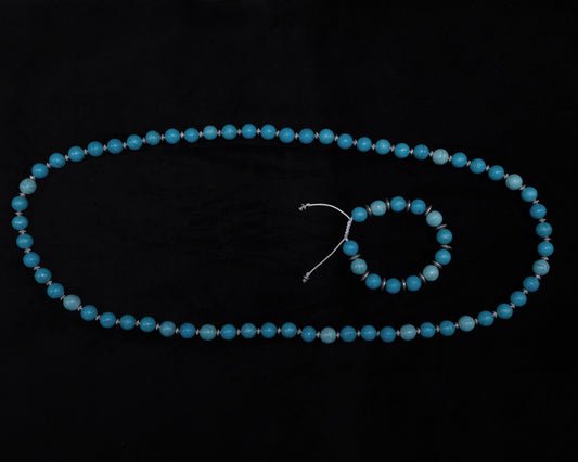 10mm Blue Turquoise Necklace & Bracelet, Genuine Beaded, Silver Tribal Spacers | Unique | Natural | Meditation crystal | healing stone | Bohemian