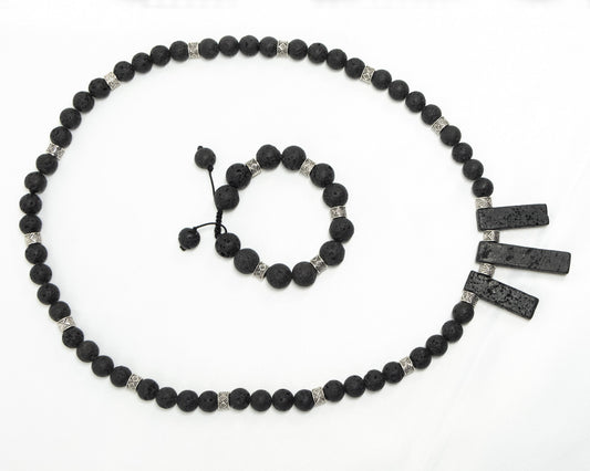 12mm Black Lava Necklace & Bracelet | Genuine | Tribal Silver Spacers | Beaded | Natural | Unique | Meditation | Healing Stone | Bohemian