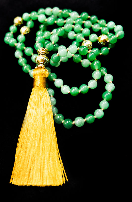 6mm Green Aventurine Gold Guru Bead and Gold Tassel Mala, Guru Beads | Meru | Meditation | Prayer beads | Malas