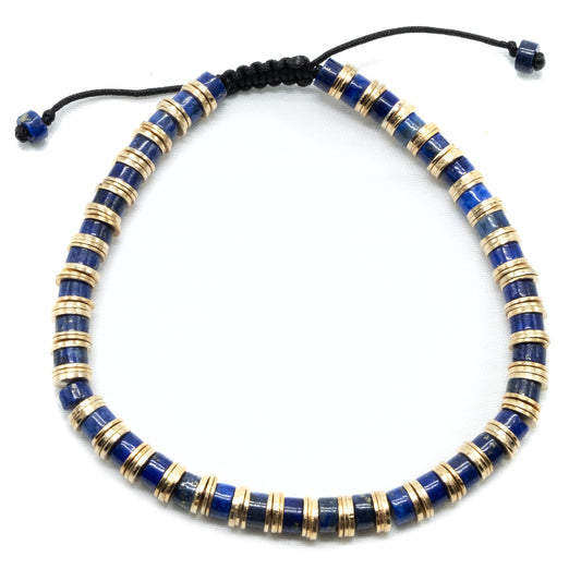 4mm Lapis Lazuli Flat Randal Heishi with gold spacer beaded bracelet. Adjustable sizing. Semi-precious gemstone