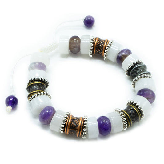 12mm White Jade and 10mm Amethyst rondells with gold, silver, and copper spacers, Adjustable