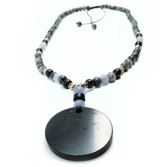 6mm Laborite, Shungite, Angelite beads with silver spacers and round Shungite main bead necklace Adjustable, Healing Stone, Bohemian