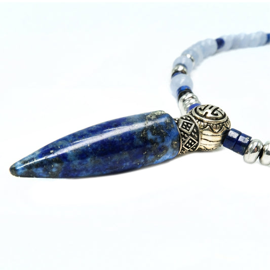 6mm Angelite, Lapis Lazuli, 4mm shungite beads with silver spacers, Lapis main bead necklace | Natural, Adjustable, Healing Stone, Bohemian