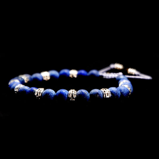 6mm Genuine Frosted Lapis, Silver Spacer Beaded Bracelet | Lapis Lazuli | Adjustable | Meditation | Healing Stone | Bohemian