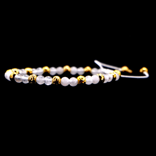 4mm White Jade beaded Bracelet with Gold Spacers. Adjustable | Meditation | Healing Stone | Bohemian | Delicate
