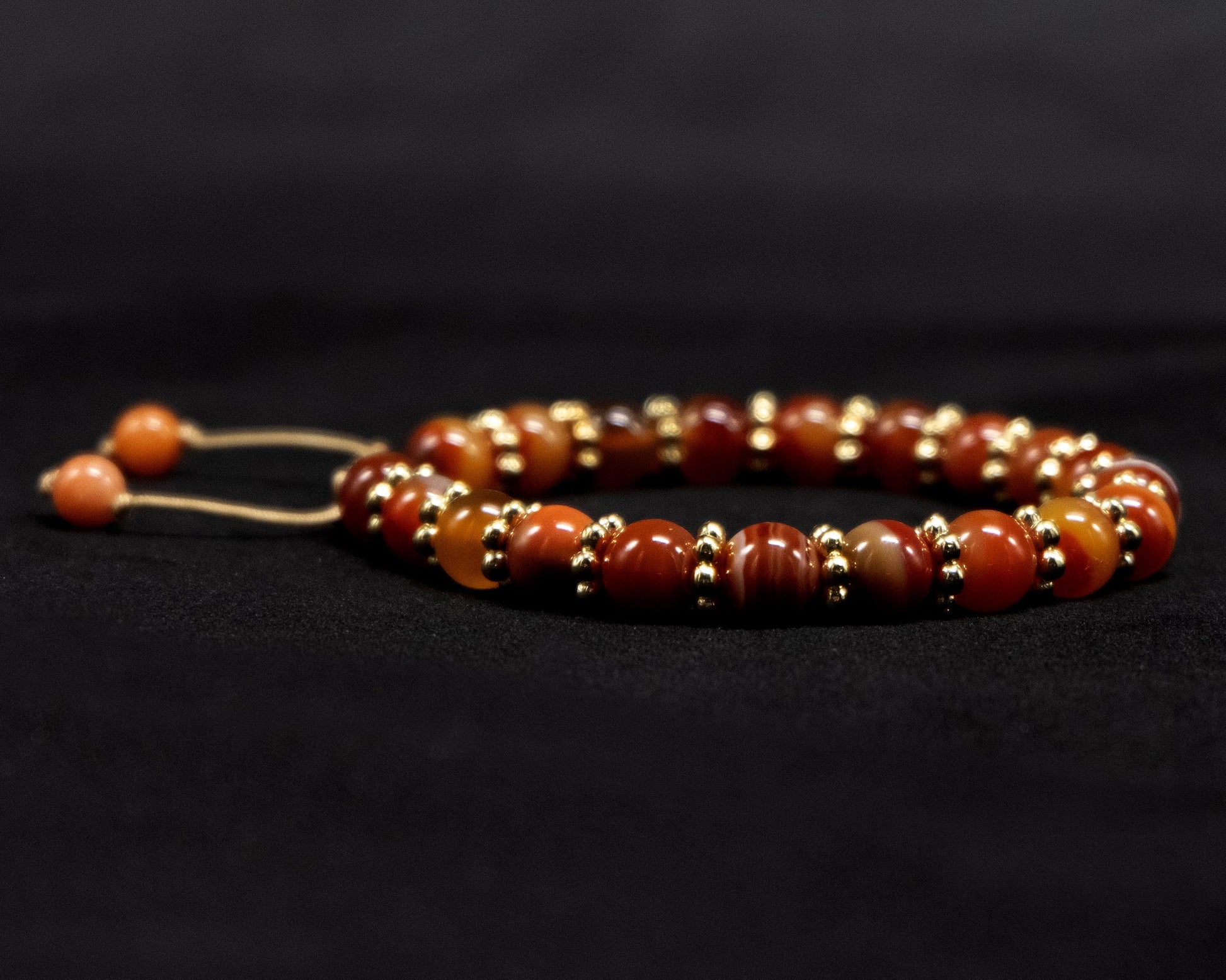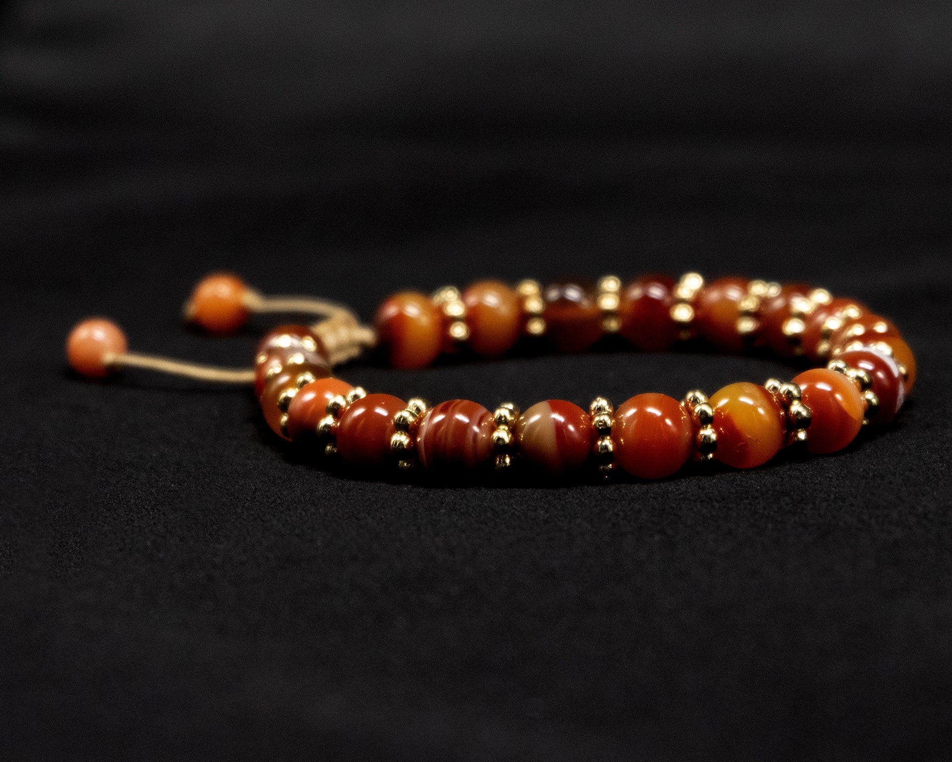 8mm Red Agate Genuine, Gold Spacer Beaded Bracelet | Adjustable | Unique | Natural | Meditation Crystal | Healing Stone | Bohemian