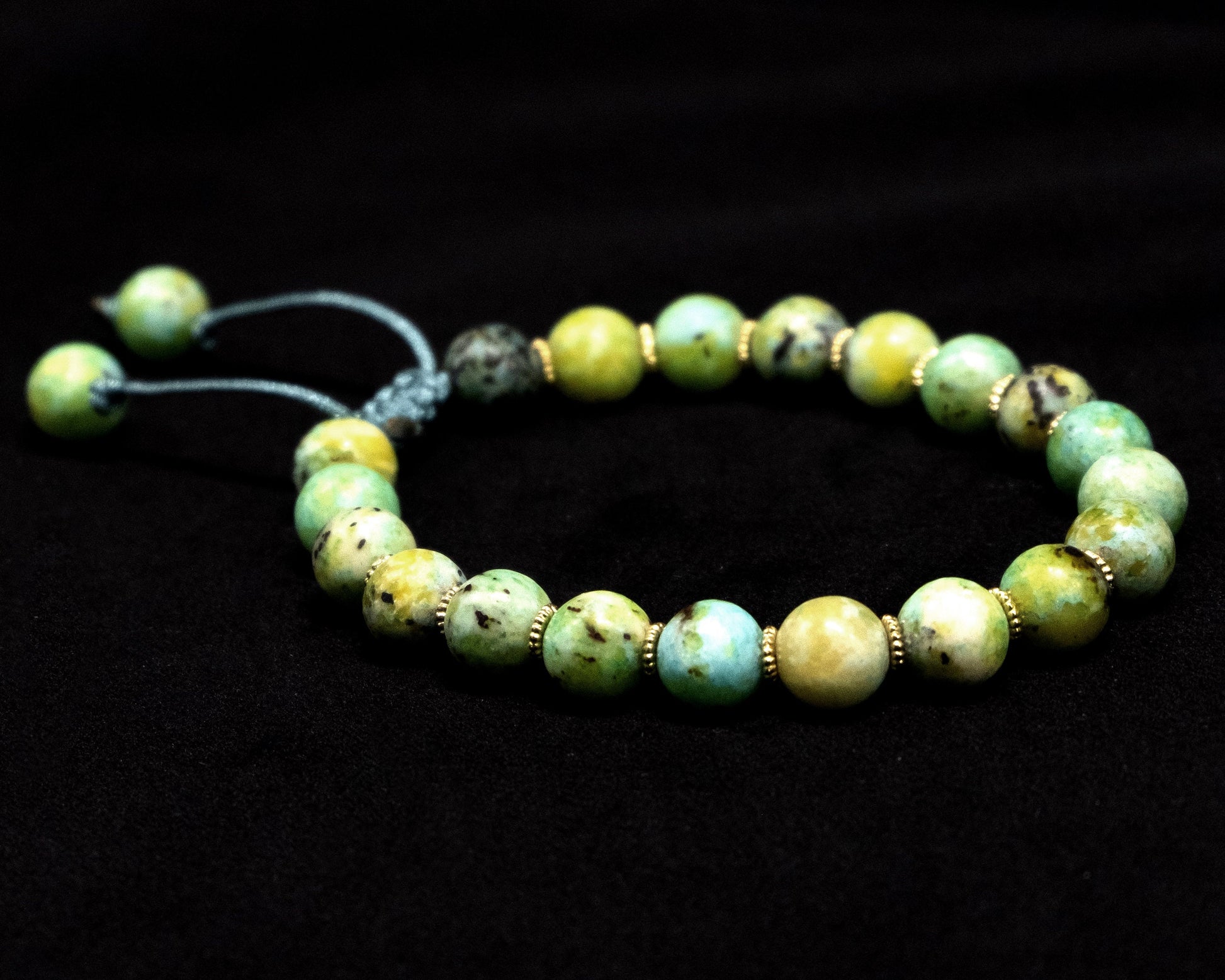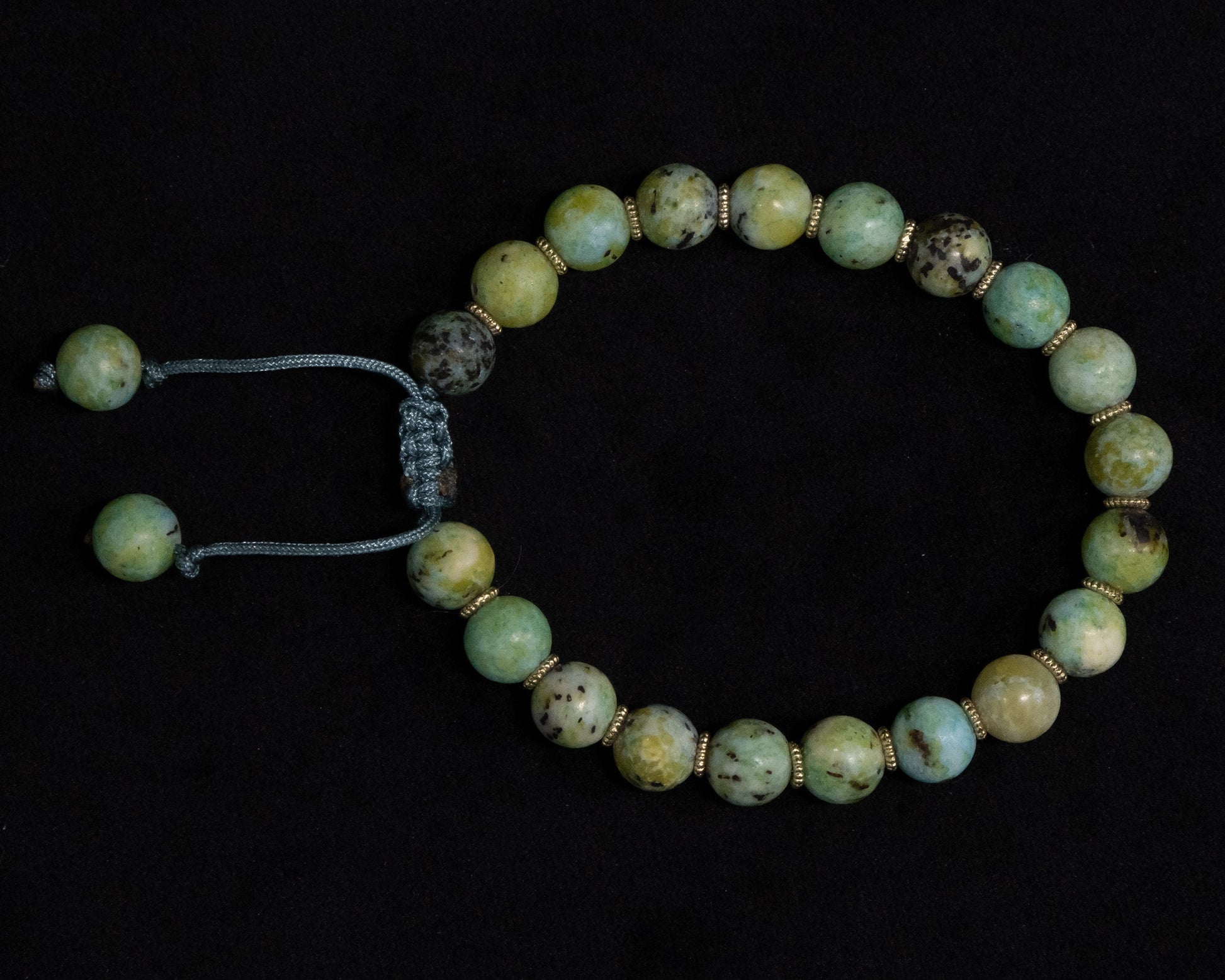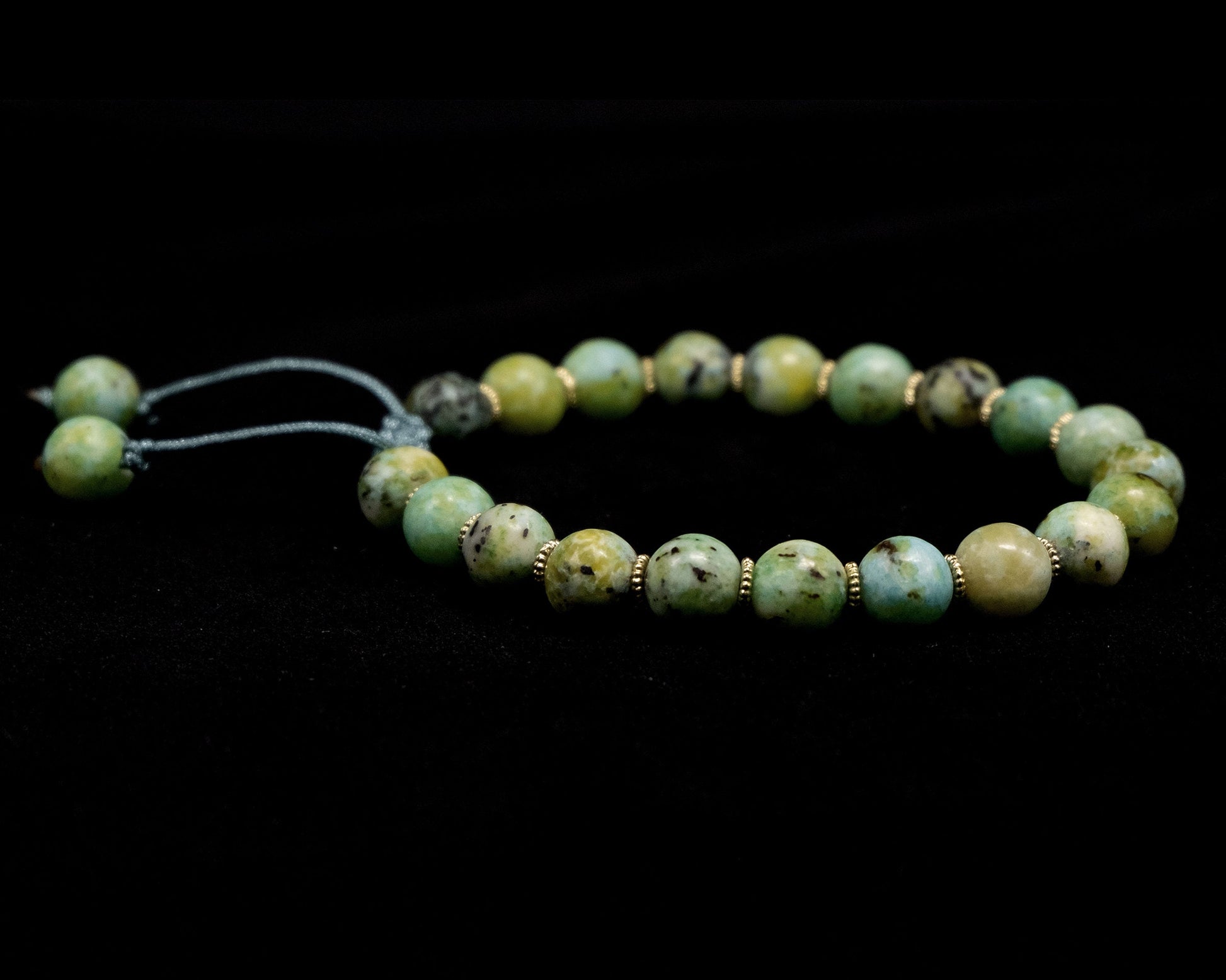 8mm Light Green Chrysoprase/Chalcedony Genuine, Gold Spacer Beaded Bracelet | Adjustable | Unique | Natural | Meditation Crystal | Healing Stone | Bohemian